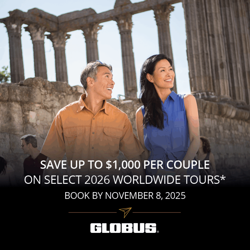 This offer applies to new bookings only on select 2026 Globus tours and can be combined with other current retail offers, Welcome Back Credits, and select partner promotions. Availability is limited — don’t miss your chance to explore a world of wonder and value with Globus!